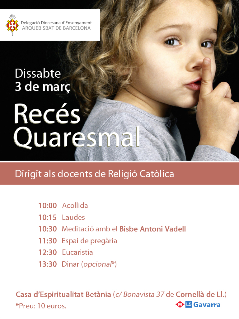 La Delegació d'Ensenyament de l'Arquebisbat de Barcelona organitza un recés Quaresmal
